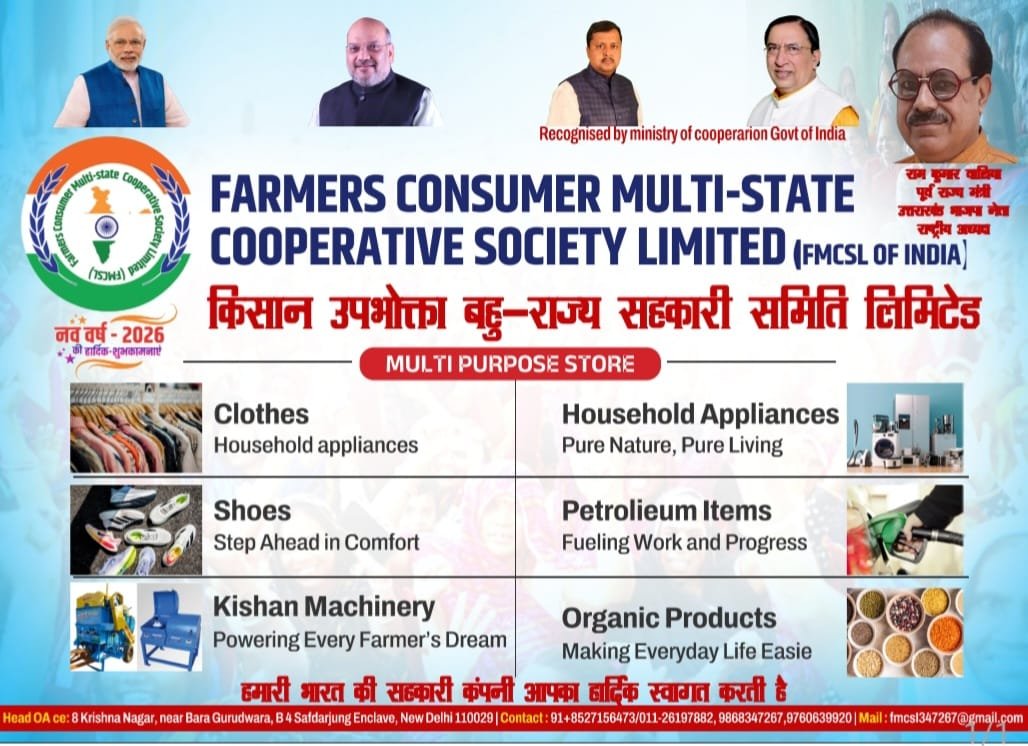 प्रकाशनार्थ/सूचनार्थ भारत के स्थान स्थान पर मल्टीपरपज स्टोर खोलकर लोगों को सस्ते में जरूर का सामान उपलब्ध कराएगी FMCSL OF INDIA ,बेरोजगारों को मिलेगा रोजगार उपभोक्ताओं को मिलेगा सस्ते में जरूरत का सामान क्षेत्र का होगा विकास ,पहले, चरण में
